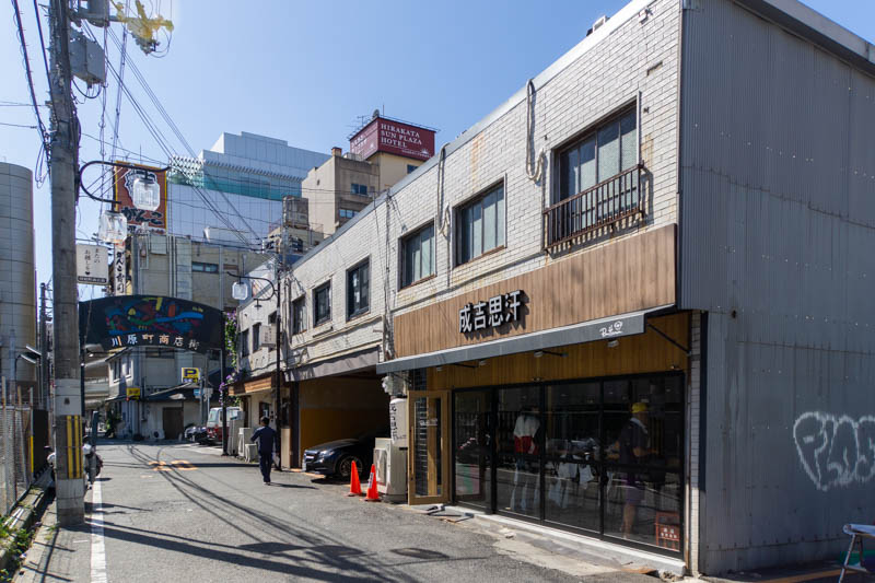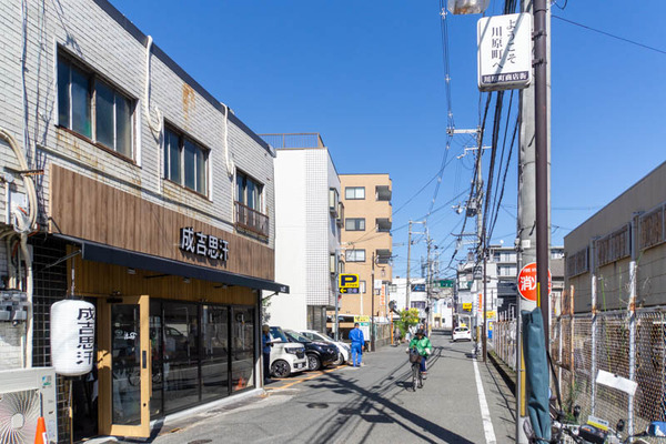 こっちに行くと川原町商店街が広がっていて、進んでいくと交野線の線路沿いに出ます。