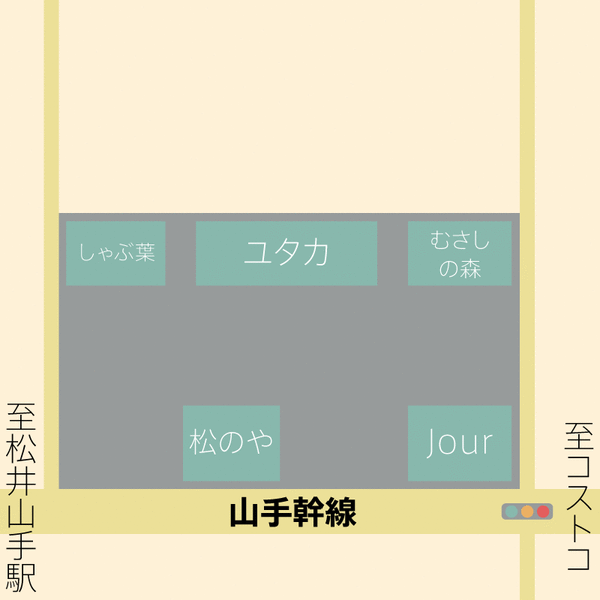 ロゼリ松井山手内の地図をぱぱっと作ってみました↓