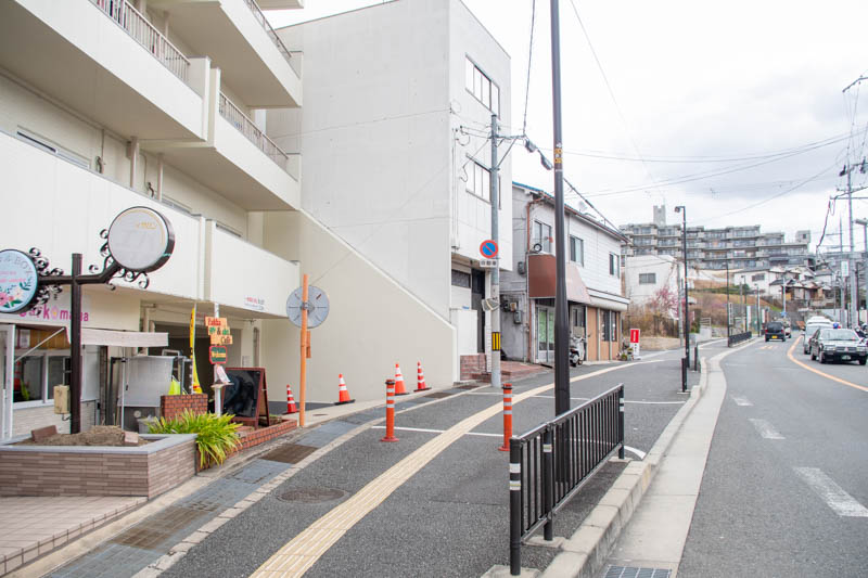こっちに行くと枚方市駅方面。すぐ近くに交差点がありそこを左に曲がると宮之阪駅が。右に曲がるとイズミヤなどがあります。