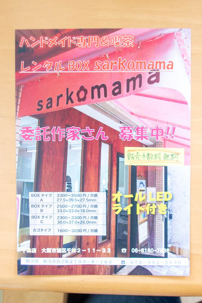 宮之阪の洋食かりん跡地にハンドメイド専門&喫茶「sarkomama」が移転オープンしています。
