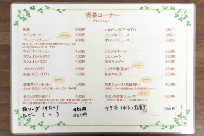 お店の方によると、健康茶、酵素ジュースなどがオススメなんだとか。