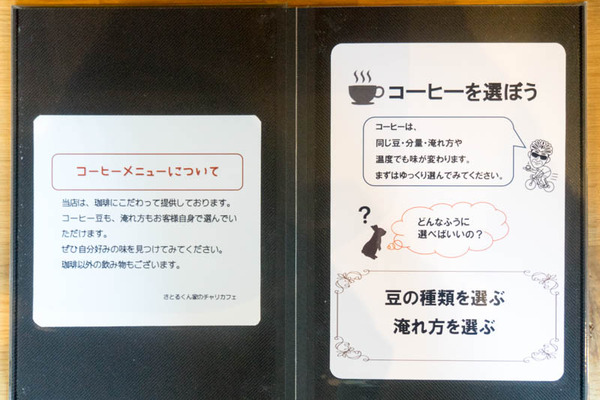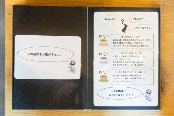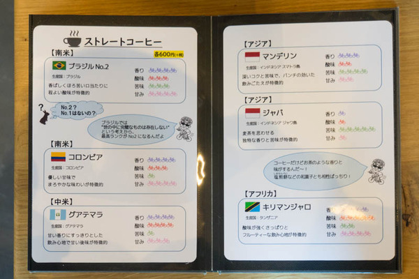 コーヒーには特にこだわっているそうで、豆や淹れ方を選択できます。