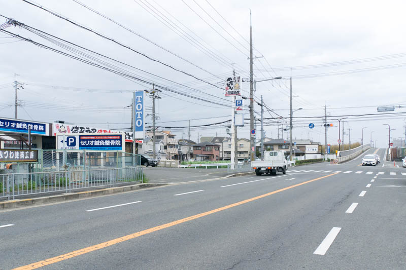 こっちにいくとすぐ船橋川を越え、酒の楽市やおおさかパルコープなどの前をとおり、くずはモールの方へ。