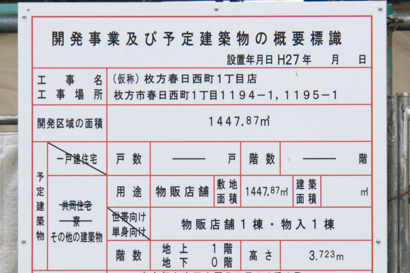 府道18号線ぞい春日西町に「セブンイレブン 枚方春日西町1丁目店」ができるようです。
