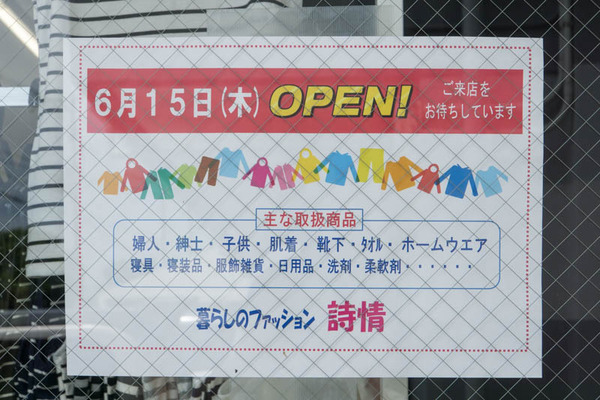 釈尊寺団地に作っていた総合衣料店「詩情(シジョー) 釈尊寺店」がオープンしています。