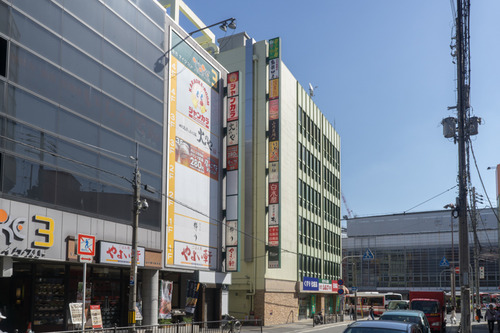 左が出来る予定のテイクスリービルで、右側の灰色の建物が枚方市駅。駅との関係はこんな感じです。
