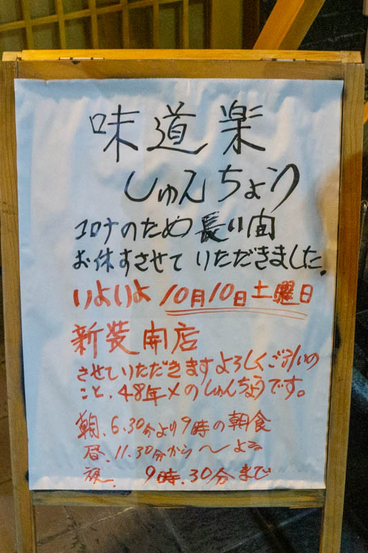 ほぼ半世紀ここや宮之阪で営業してきた「しゅんちょう」(途中でオリエンタルな雰囲気のお店もできましたが)。