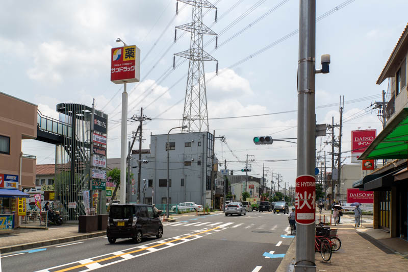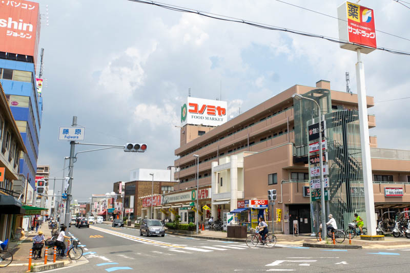 こっちへ行くとジョーシンやサンドラッグなどがありまして、その先にある「楠葉中央」交差点を左に曲がると、くずはモールへ。