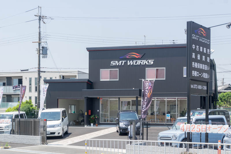 府道18号線ぞい高田に「SMT WORKS(エスエムテイワークス)」という中古車販売店ができています。
