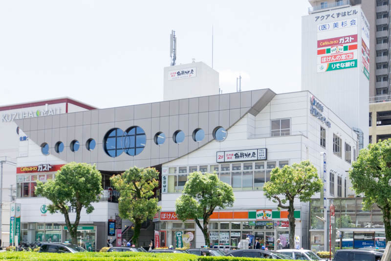 店舗を背にして撮影したらこんな感じ。樟葉駅の目の前の位置です。