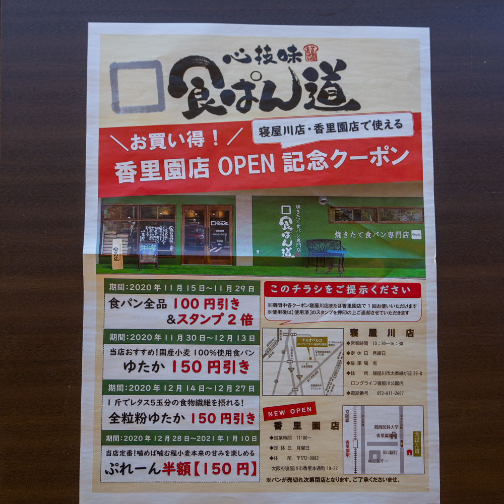香里園駅近くに食パン専門店「食ぱん道 香里園店」がオープンしています。