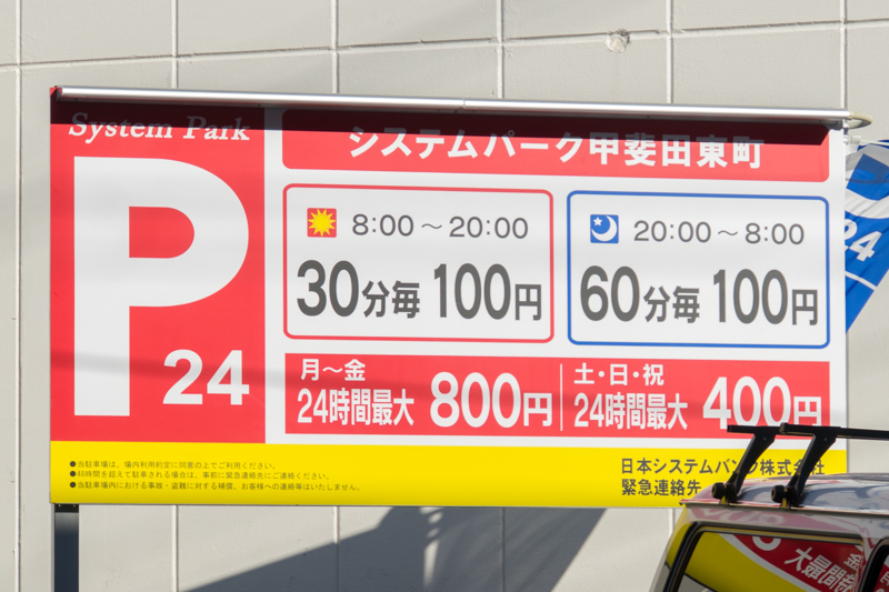 最大料金は平日と土日祝で異なり、平日800円土日祝400円といったかたち。土日祝のほうが安いんですね。