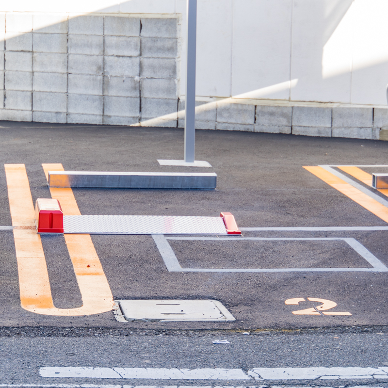 駐車可能台数は4台で、下から板があがってくるフラップ式のコインパーキング。