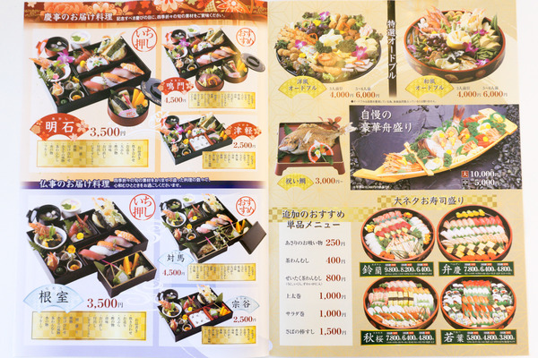 仕出し料理は慶事用のお料理やお寿司盛り合わせもあるようなので、ちょっとしたお祝いにも使えそうですね。