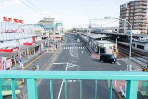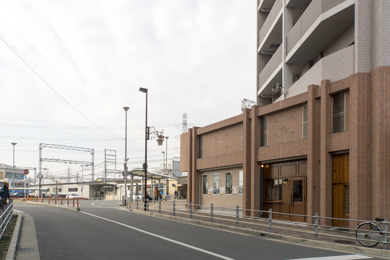 右側がお店で、左側が牧野駅の西側ロータリーです。