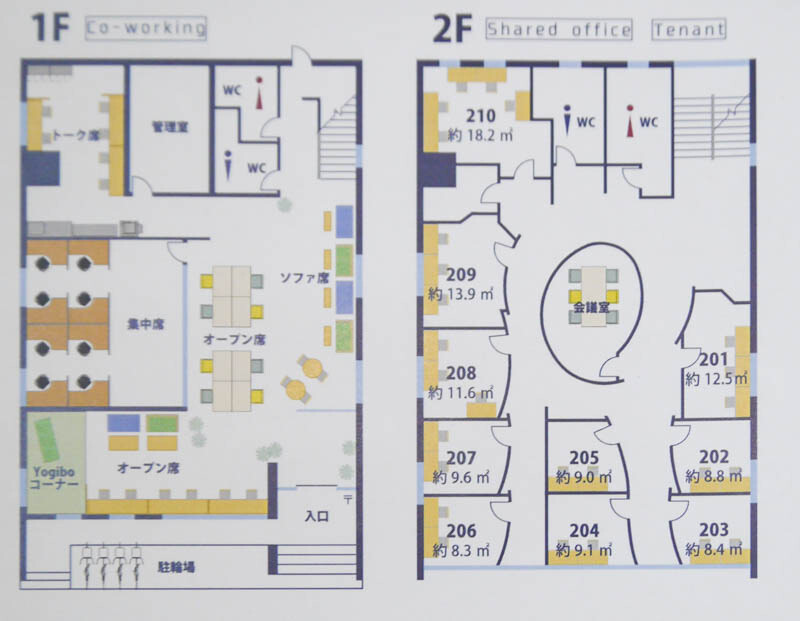 コワーキングスペースとシェアオフィスに分かれているようでした。