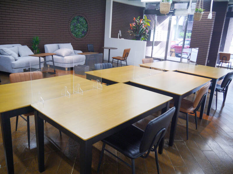 1階は電源・Wi-Fiを完備した「会員制コワーキングスペース」です。月額9800円から利用可能。