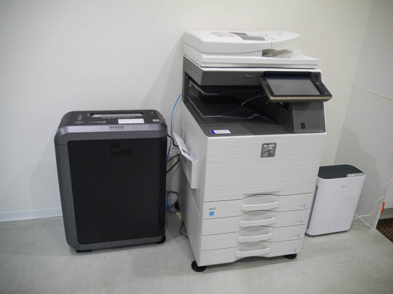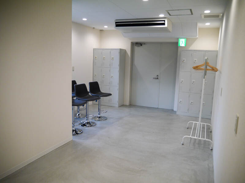 1階の奥にはロッカーや複合機などが設置されています。テーブルや椅子などの家具はまだ準備中なんだそうで、後日追加予定。