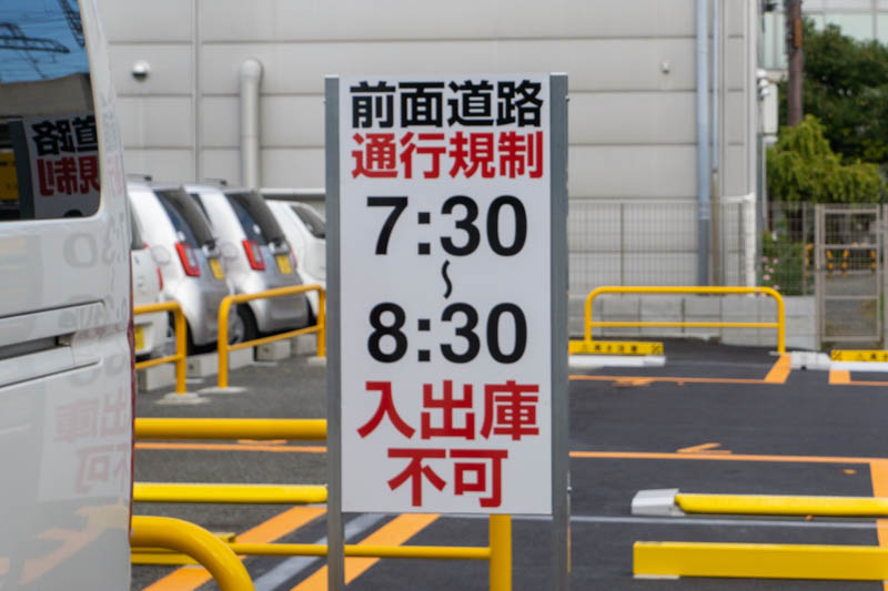 7:30〜8:30まで通行規制のため入出庫不可とのこと。