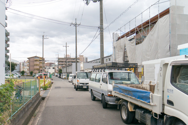 ちょっと場所がわかりにくいのですが、こっちに行くと川を渡って住宅につきあたり、右に進むと近くにラフィネカフェが。ラフィネカフェの前を通ってまっすぐ進むと、フレスコやローソンがある愛称市道、サンシャインロードにでます。