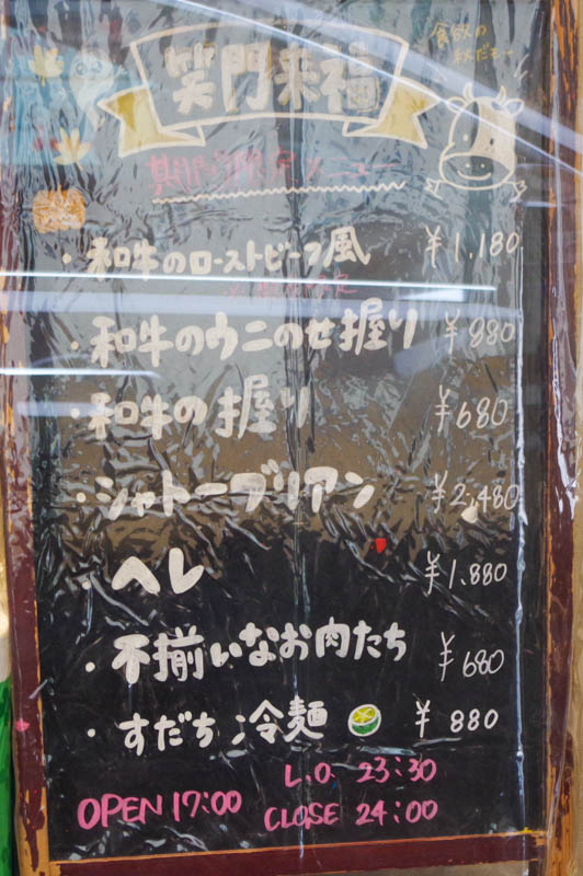 (1階にあったメニュー看板。不揃いなお肉たちが気になります)