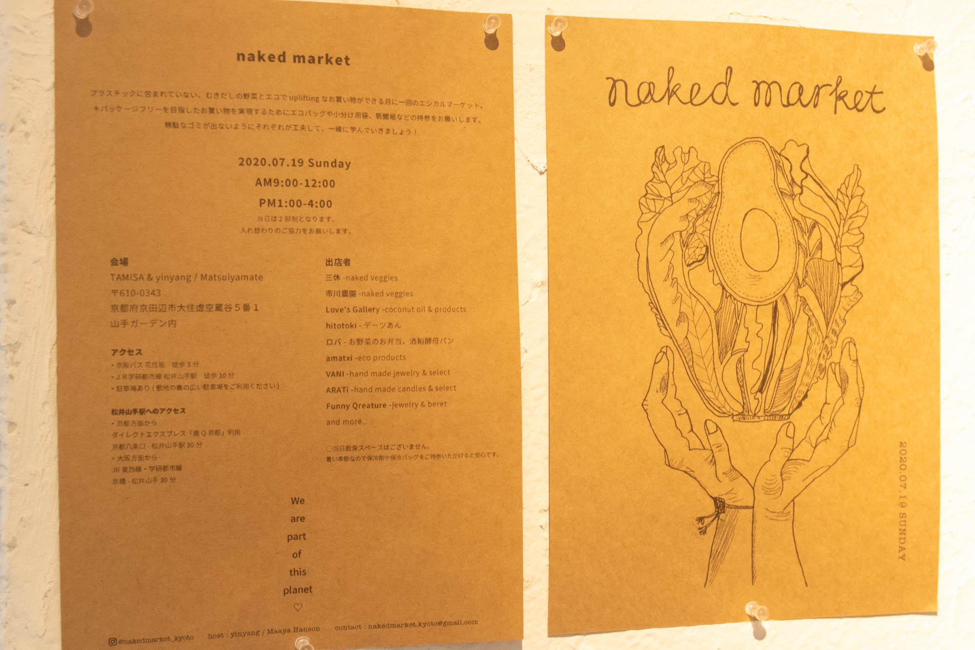 毎月第3日曜日には、むきだしの野菜のお買い物ができる、Naked Market(ネイキッドマーケット)が開催されるとのこと。(→詳細)