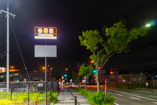 出入り口は2つ確認できまして(もしかしたら府道284号線側にもう1個あるかも)、1つは山手幹線沿いのきんのぶたと同じ出入り口。こっちからだと少し奥まった位置に店舗があります。