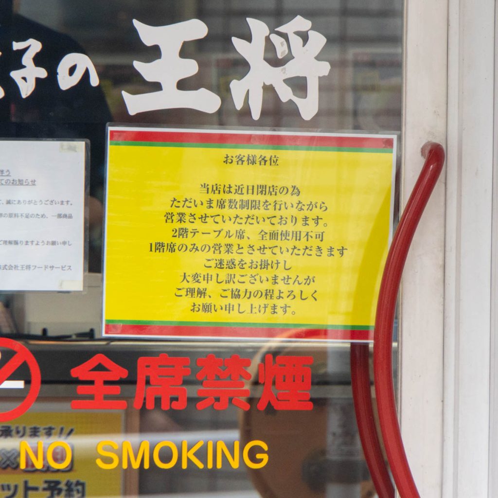 枚方市駅近くの「餃子の王将 枚方市駅前店」が閉店するようです。