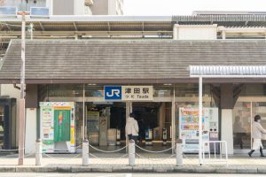 道路向かいには「大衆酒場 夢屋 香里園楼 / 立吞み 夢屋看板娘」があります。反対方向へ進むと香里ダイエー本通商店街の「キングラム」や「チョコザップ」があるあたり。