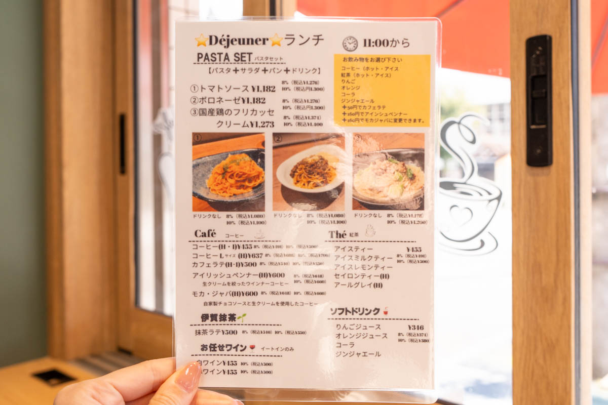 ランチはパスタなども。ケーキセットもおしゃれで美味しそう〜!