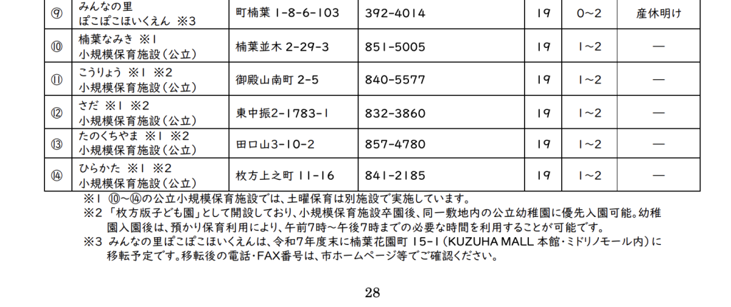 移転のソースは、枚方市の保育所(園)等利用の手引きの28ページ(→PDF)。