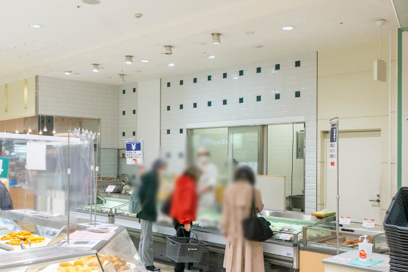 黒のタイルの場所が鮮魚コーナーの実演販売が行われる所。