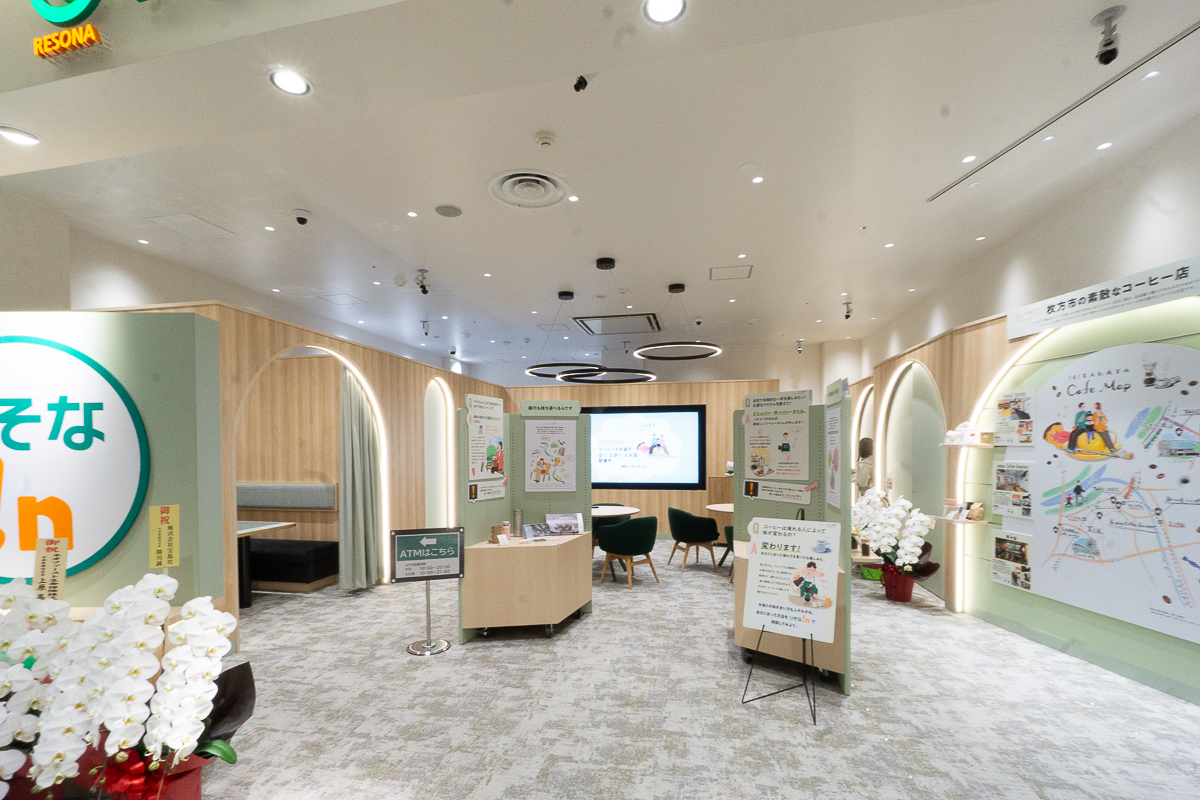 「リそな!n」は、りそな銀行が運営する新業態の店舗で、日頃の悩みごとをテーマにしたイベントやセミナーを実施するなど、お金のことだけでなく、くらしの困りごとの解決につながる場を提供するお店なんだそうです。(→公式サイト)