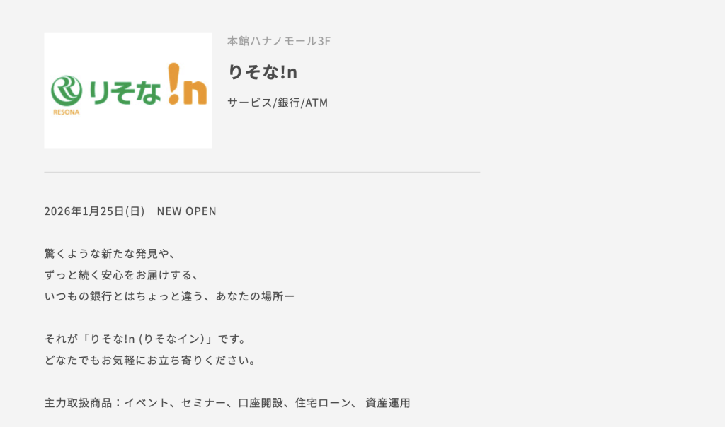 場所は本館ハナノモール3階で、11月にオープンした「フォルムフォルマ」の隣です。