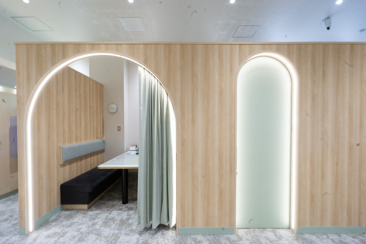 店内も見せてもらいました。カーテンを閉めると個室になるエリアもあり、周りを気にせずゆっくりいろいろな相談ができそうな雰囲気。