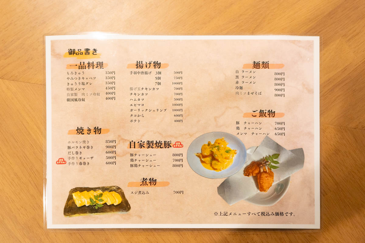 メニュー。麺類やご飯物も充実していますし、お酒を飲まない方でも利用しやすそう!