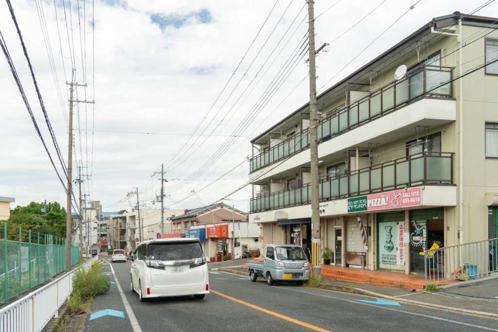 こっちに真っ直ぐ進むと府道18号線に出ることができます。道を挟んだ目の前には船橋小学校が。