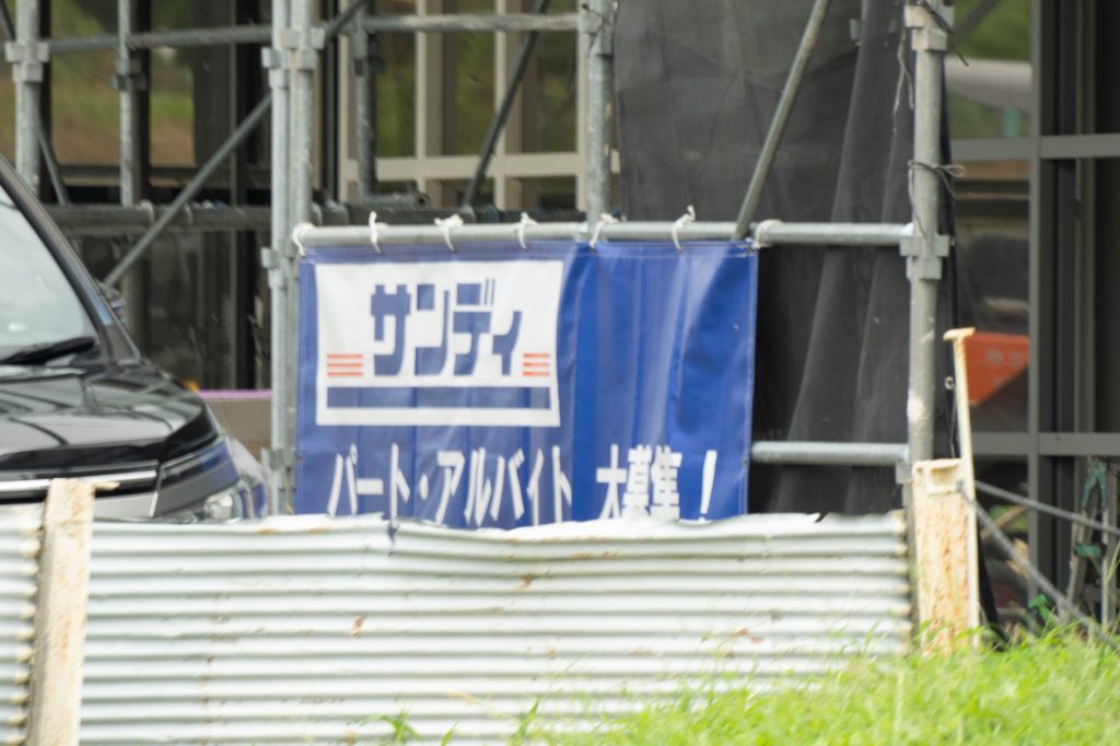 現地には「サンディ」の求人についての横断幕が。また、求人サイトにも記載があり、それによるとこの場所に「サンディ 枚方津田店」ができることが分かります。