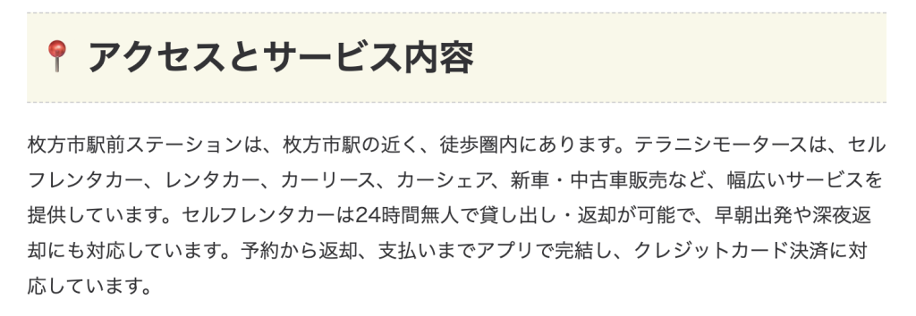いざという時のためにここにセルフレンタカーステーションができたことを覚えておくとよいのでは!