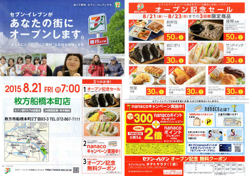 船橋本町につくってた「セブンイレブン枚方船橋本町店」がオープンしてる