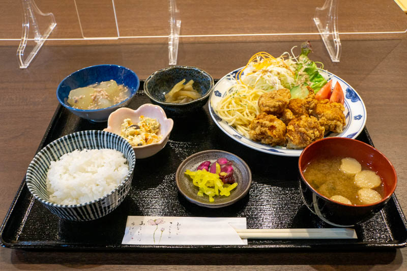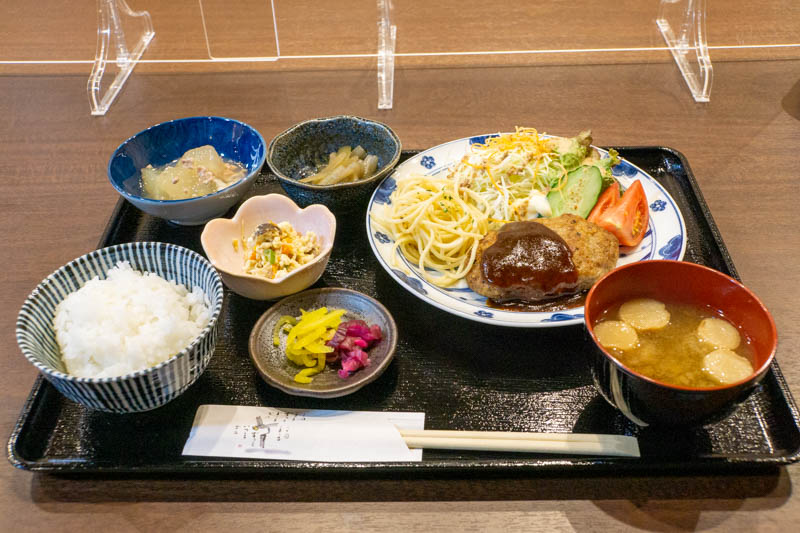 ランチメニューのハンバーグ膳やから揚げ膳は850円。