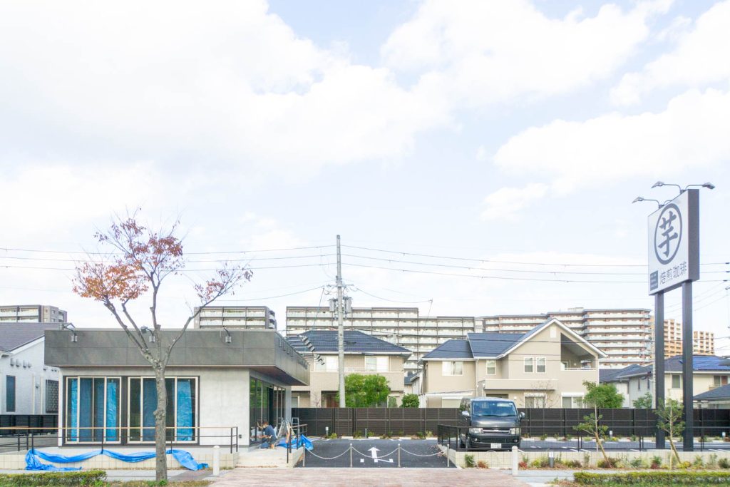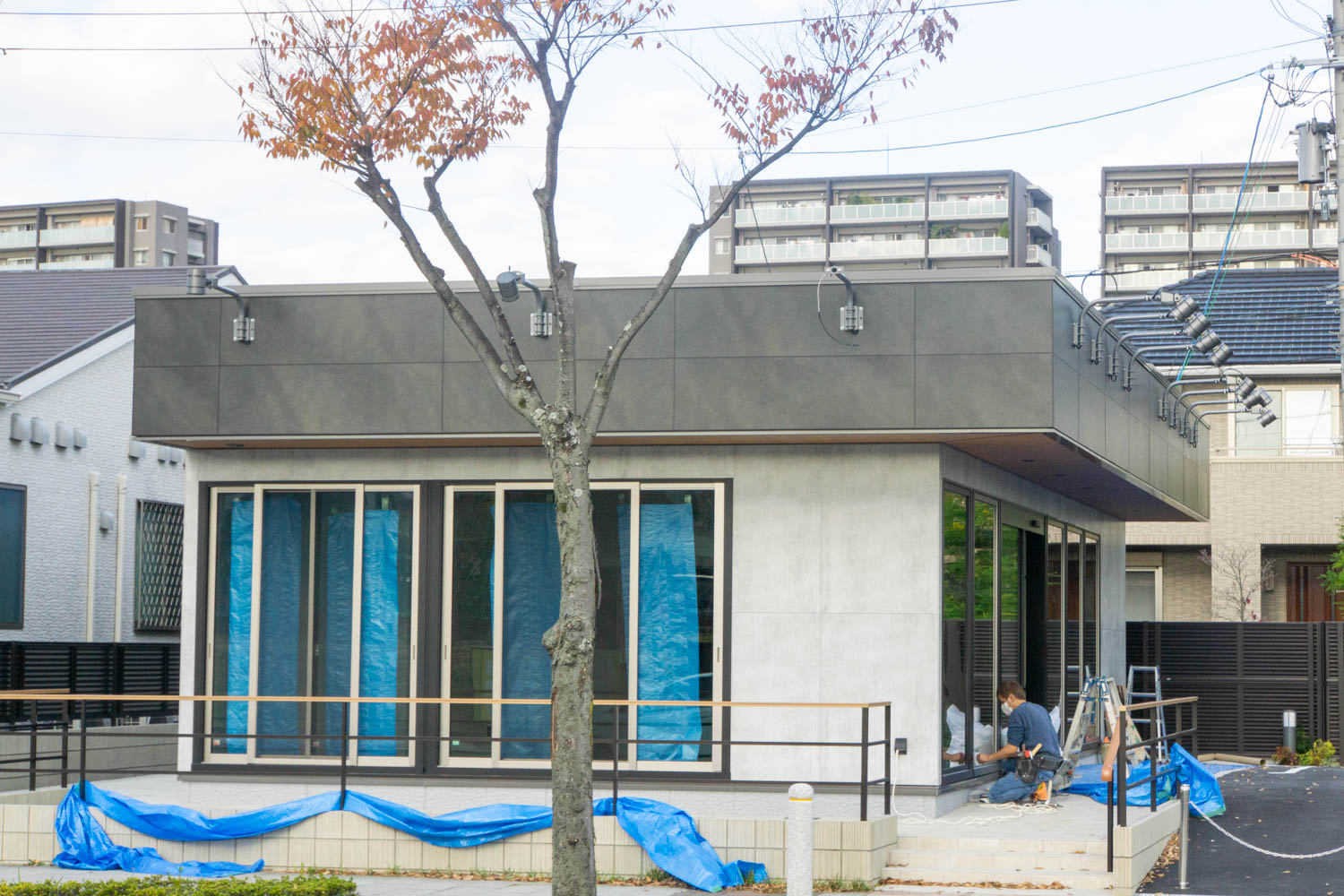 松井山手に作っている「高級芋菓子しみず 京都松井山手店」の建物の外観がほぼできています。
