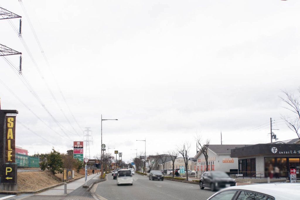 こっちに行くと「やまや」などの前を通ってソフィアモールやコストコなどの方へ。