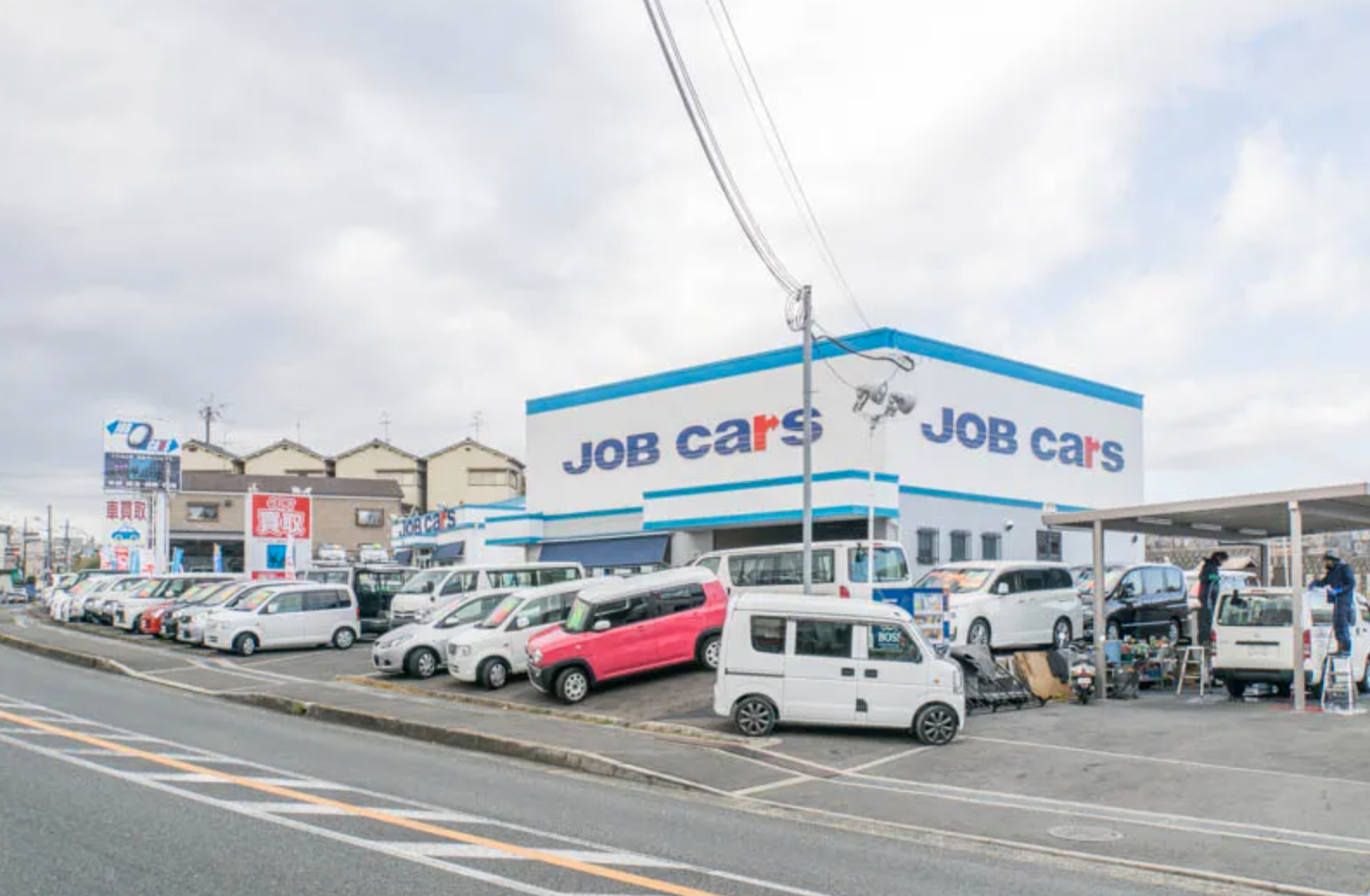 ジョブカーズといえば枚方市内でも茄子作東町や出口にも店舗がある中古車販売店。1号線沿いの目立つ立地ということもあって、車がここにずらーっと並んだらインパクトがありそうですね〜!