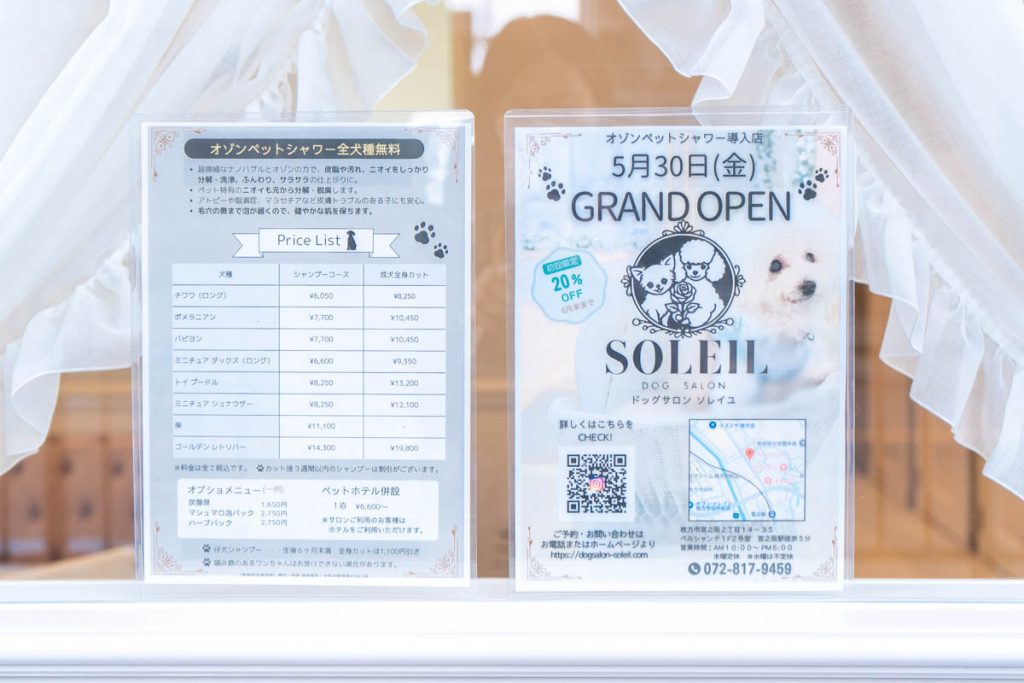 イズミヤ枚方店ちかくに作っていたドッグサロン「SOLEIL(ソレイユ) 枚方本店」がオープンしています。