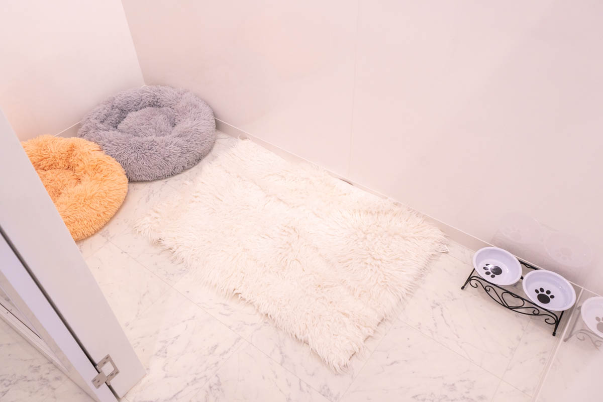 ペットホテルエリア。1匹で過ごす用のお部屋は3部屋あり、多頭飼いの方や広い場所がすきなワンちゃんも安心な大きいお部屋もありました。
