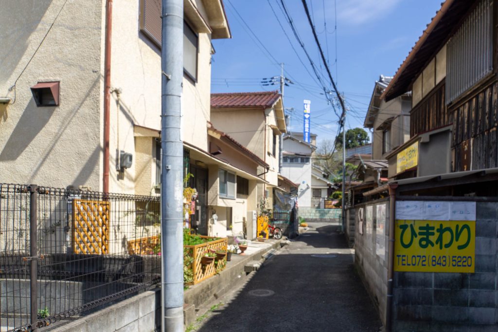 右に行くとひらパー沿いへ。左へ行くと光善寺駅方面。