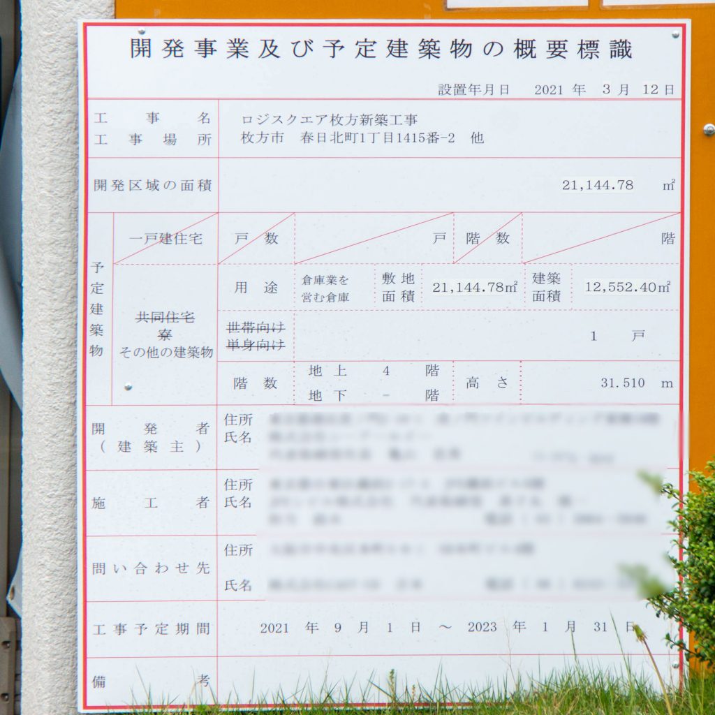 春日北町に物流施設「ロジスクエア枚方」ができるようです。