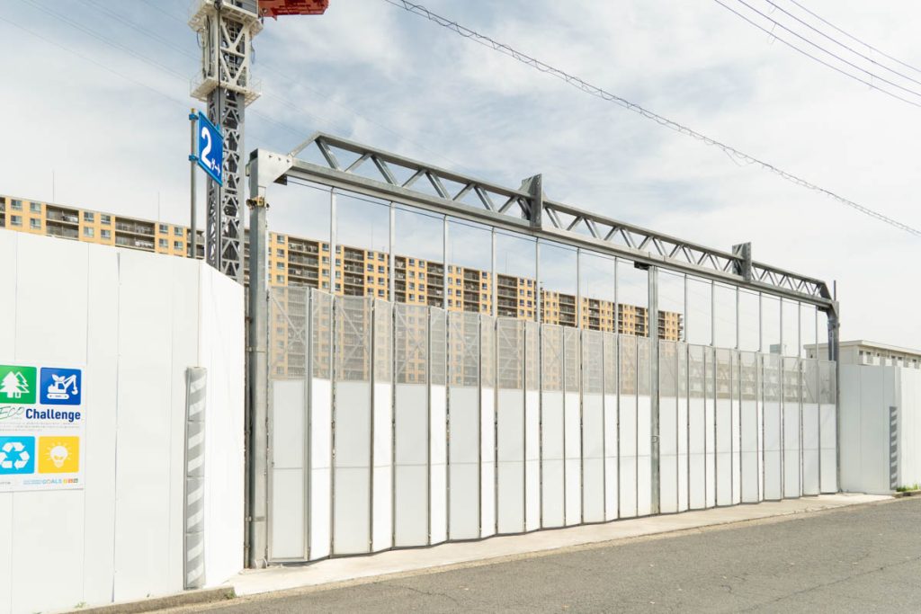 振り返ると高さ154m43階建のタワーマンション「ウエリスタワー枚方樟葉」の工事現場です。