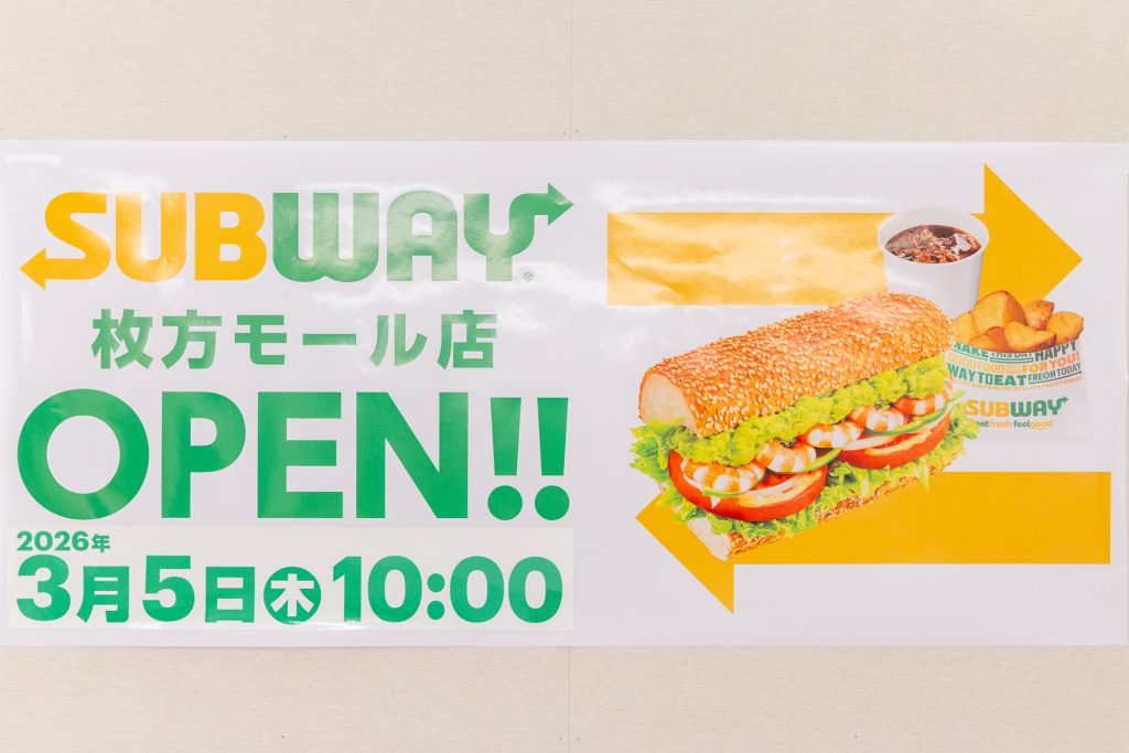 枚方モールに作っていた「SUBWAY(サブウェイ) 枚方モール店」がオープンしています。
